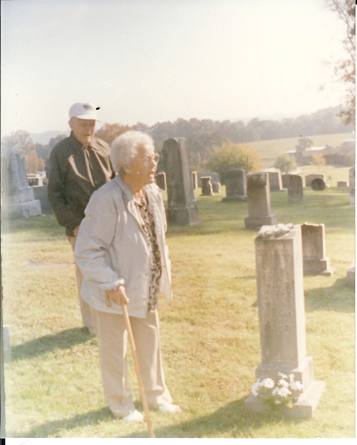 **Back Says "Me in Forest Hill Cem - these are gram and gramps Bassinger's Stones. Forest Hill Baptist Church where mama and grandma Bassinger went."