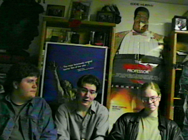 It all began with the three of us in the picture. That is James, myself, and Rob (notice the Evil Dead poster in the back, ahh yeah!). For the longest time all of us had been into acting. That passion started durring Elementary school for most of us. It wasn't until our Freshman year that we started filming comercials, previews, and the such. Now, we always planned to make a movie, even wrote up a script or two, but we never did get around to it.