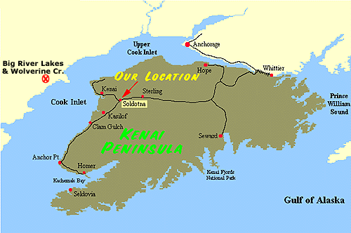 (From Kenai) If you are flying into Kenai and picking up your rental vehicle there, ask the counter person to direct you from the airport to the Kenai Spur Hwy. Its a single street to take and easy to follow. Turn left onto the Spur Hwy and travel approximately 9.5 miles to Soldotna, where you will turn right onto Knight Drive (across from the car wash).