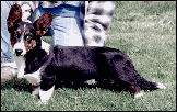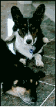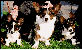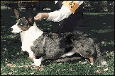 This Welsh Cardigan Corgi is Ch. Phi-Vestavia Blue Juniper, better known as "NO-NO". He is the father of Bridget's puppies, and resides with our friends, Carolyn and Mandy Cannon. (Eng/Am/Can Ch. Beckrow Blue Cedar X Ch. Phi-Vestavia Aynweth.) Last I heard Juneau had 31 BOB's! Visit the Cannon's homepage and learn more about Corgwn by clicking on No-No's picture at the left.