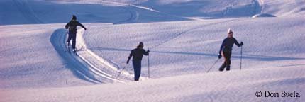 | Skiing Some of the world's greatest skiers challenge themselves on Anchorage's Olympic-caliber Alpine slopes and Nordic trails. Experts and novices alike can choose from numerous scenic ski areas. ![]() Cross-country Skiing Anchorage is a cross-country skier's paradise. Whether you prefer groomed, lighted trails, or challenging backcountry routes, you'll find them everywhere! If you're a competitive skier, you already know Anchorage is among the top competitive venues in the world for Nordic skiing. In fact, the U.S. Ski Team trains at nearby Hatcher Pass and the 1994 U.S. Olympic Trials for cross-country and biathlon competitions were held in Anchorage. Downhill Skiing Choose from three downhill ski areas within the municipality: Alpenglow at Arctic Valley: Good intermediate skiing and great fun for snowboarding. The area has three chairlifts, T-bar, and two pony tows. Some night skiing available. It has a ski school, rental shop, and two day-lodges with cafeteria. Information: 907-563-2524. Alyeska Resort: Just 45 minutes south of downtown, this is Alaska's Olympic-quality ski area and the site of many international skiing competitions. Serviced by a bubble-top quad lift, two fixed grip quads, three double chairlifts and two pony tows. Alyeska's slopes challenge the expert and pamper the beginner. A 60-passenger tram moves skiers and sightseers to a mountaintop facility that includes a skier's restaurant and a casual fine dining restaurant/lounge. The mountain, which has the lowest base altitude of any major ski area in the world, provides 2,890 vertical feet (867 vertical meters) of skiing. The resort features a rental shop, ski school, restaurants and shops. Snowmaking; night skiing, snowboarding, telemarking. Bus service is available from Anchorage. Information: 907-754-7669. Hilltop Ski Area: Designed for beginning downhill and telemark skiers, this area also attracts snowboarders with its half pipe. It's also home to the only ski jump in the area, the Karl Eid Ski Jump Complex with 15-, 40-, and 60-meter jumps. Hilltop has a double chairlift, rope tow, rentals, gift shop, ski school and restaurant/warm-up lodge. All runs lit for night skiing. Another plus, it's on municipal transit system. Information: 907-346-1446. |