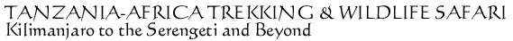 and elephant silently reach to the mountain springs. Watch for lion, rhino and zebra as we trek and travel by 4x4 land cruisers through the many parks of Tanzania. We climb Kilimanjaro via a special route -- the road