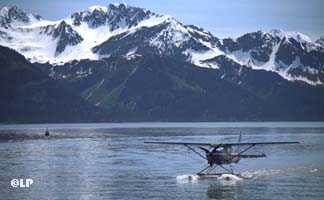 The floatplane, above right, has just landed in Resurrection Bay near Seward. Seward is a deep water port that serves tourists who arrive on cruise ships from the Lower 48 and freighters that carry Alaskan coal to the Far East.