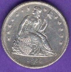 The Gobrecht pieces form two types. First is the obverse type 4 without stars and next the obverse type 5 with stars. Both patterns are rare and expensive. These are both dream coins and not practical for the average collector. They do look nice though in museum displays or in books that list rarities. It makes for good press much the same as copper 1943 cents or 1913 “V” nickels. The next is type 6 and 7 Seated Liberty dollars. Type 6 is without motto and type 7 with motto. They start at $100 in good to approximately $1000- $15,000 in uncirculated. A high grade circulated piece is probably a good choice for us average collectors on these pieces.