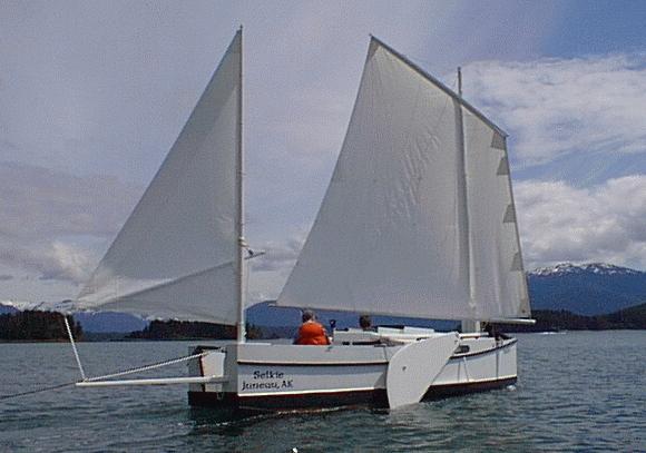 Here's a few pictures from the first sail of the Bolger-designed Martha Jane "Selkie",