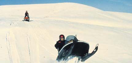 | Snowmobiling Frozen lakes and wooded trails offer lots of thrills and spectacular treks for snowmobilers. Although snowmobiling (often called snowmachining) is not allowed within municipal parks, you'll find trails in the Big Lake area, Chugach State Park, Hatcher Pass, Turnagain Pass, and parts of the Kenai National Wildlife Refuge. For general information, call the Anchorage Snowmobile Club: 907-566-0272. |