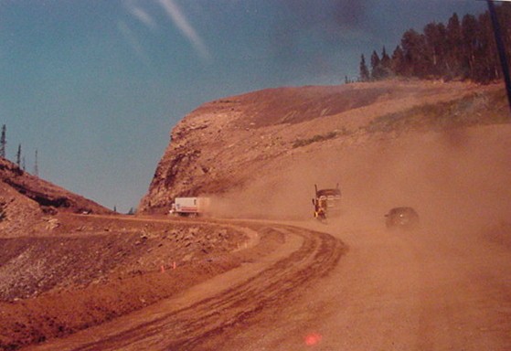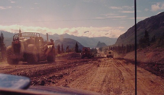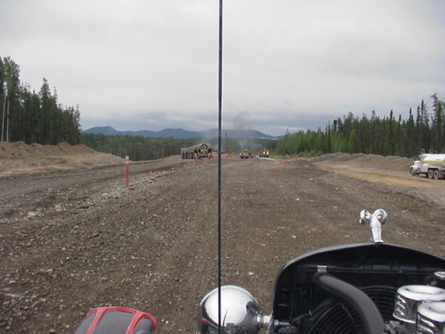 Most of the road is paved but sections are normally under construction during the summer months. Most of the paved sections are oil and chip. Which consists of liquid tar or asphalt sprayed on a dirt road bed. Loose gravel chips are spread on top. Travel on these sections is dusty with lots of flying chips which are tossed in the air by vehicles coming from the other direction. Windshields are a big target. Frost heaves are also present which can make for a bumpy ride in spots. Road conditions change daily. You never know what might be around the next corner or crest of the hill. Dry days bring dust, rain brings the mud. I have seen almost every type of vehicle driven on this road. Each year the road improves. The view is spectacular and worth the trip.
